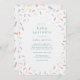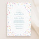 A baby sprinkle invitation features colourful rainbow sprinkles. Customise with your wording. Click "Customise further" to edit the font style, size and colour if desired.