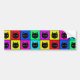 Cute and funky black cat silhouette faces on a multicoloured rainbow square background. This cartoon cat pattern is very hippie style and will make a great gift for a cat lover!