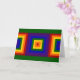 Show your love of colour with alternating geometric rainbows. A series of red, orange, yellow, green, blue, indigo, and violet squares radiate out from the centre of this festive design. On either side of the main square are halves of 2 rainbow squares with the colours sequenced in reverse order.