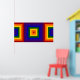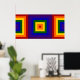 Show your love of colour with alternating geometric rainbows. A series of red, orange, yellow, green, blue, indigo, and violet squares radiate out from the centre of this festive design. On either side of the main square are halves of 2 rainbow squares with the colours sequenced in reverse order.