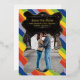 Contemporary wedding save the date card featuring a fun design with your event details in a simple layout, over your favourite photo. Your photo is inside of a hand drawn squiggle frame that is over a rainbow background. All design elements on the front are in real foil and the back is black and white. The foil on the front may be changed to ink and the back may be changed to any colours you choose in the design editing tool. The organic shape of the wavy frame and the vibrant rainbow colours makes this save the date card a great choice for a modern wedding.