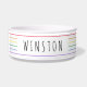 Add your cat or dog's name to this modern and minimal subtle thin rainbow stripe gay pride inspired food or water bowl for a cute expression of love based on the gay pride flag that will look cute and chic in any trendy and modern or farmhouse inspired home or apratment.