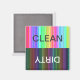 A contemporary design in bright and dull rainbow stripes, for letting everyone know if the dishes in the dishwasher are clean or dirty.