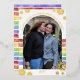 Happy Holigays photo card with gold snowflakes, rainbow stripes and your photo inside an arch shape with curved text. Funny and pretty LGBT Christmas card with rainbow stripes, gold foil snowflakes and gold foil text around your photo.
