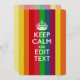 Your personalised Keep Calm saying on a rainbow stripes decor. A personalised Keep Calm style saying on a one of a kind gift. Humourous or whimsical try on your creative words on two editable lines of text. Remember to use CAPITAL letters for best results.
