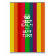 Your personalised Keep Calm saying on a rainbow stripes decor. A personalised Keep Calm style saying on a one of a kind gift. Humourous or whimsical try on your creative words on two editable lines of text. Remember to use CAPITAL letters for best results.