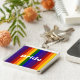 Red, orange, yellow, green, blue, indigo, violet: the colors of the rainbow are presented in vertical stripes in this design. The festive rainbow sequence repeats across the design.