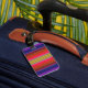 Make your luggage stand out on an airport carousel with unique tag designs! This brilliantly coloured luggage tag is decorated with a striped pattern in orange, purple, yellow, red, green, violet and black which resembles a beautiful abstract rainbow pattern. Customise the reverse side with your personal information.