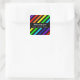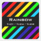 A rainbow and black stripes pattern with space for a custom name and pronouns.
