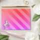 A cute rainbow striped envelope with a unicorn theme, it has large, pink diagonal stripes on the outside with a little unicorn princess in one corner, and orange and purple shades on the back. There is also a pair of party balloons on the back of the envelope. Please note, this colourful and cute unicorn envelope has been especially created to match the invitation which you can find here: https://www.zazzle.com/rainbow_princess_unicorn_birthday_invitation-256399528351496697