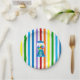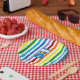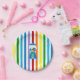 Rainbow stripes with blue gumball machine paper plate