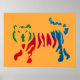 A colourful rainbow stripey tiger design with red, purple, green and blue original stencil art design by Zoe Tuong. The background is fully customisable to suit your decor. perfect for a kids room or to brighten up the house with a colourful art vibe.