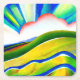 Rainbow Sunburst Landscape Square Paper Coaster