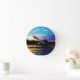 Rainbow sunset on mountain Lake Round Clock