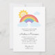 Invite friends and family to your baby shower with this rainbown sunshine themed invitation.