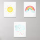 This sweet print set features my hand drawn rainbow, sun and clouds.