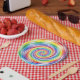 A colourful array of bright rainbow colours swirled to give it a spinning kind of feeling.