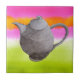 From an original illustration of a teapot drawing in graphite pencil against a rainbow multi-coloured pink, orange and green watercolour background. This delicate and arty hipster style piece is colourful and bright and reminds one of a tea party.