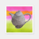 From an original illustration of a teapot drawing in graphite pencil against a rainbow multi-coloured pink, orange and green watercolour background. This delicate and arty hipster style piece would be perfect for a tea party