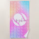 Rainbow Tennis Typography Ball & Girl Players Name Beach Towel