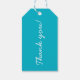 Deep rainbow colours pop against a teal background. "Thank you" is inscribed in contrasting white in a friendly font on the reverse side.