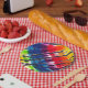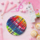 Do you love tie-dye? Celebrate the 60s and 70s in style with these rainbow tie-dye plates! Photo of an actual tie-dye piece with the sun shining through to make the colours vibrant.