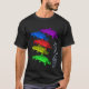 Rainbow trout swim across this shirt with the kanji symbols for "rainbow" and "fish"