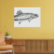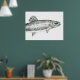 High-quality Poster featuring a black and white drawing of a Rainbow Trout.
