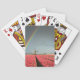 Playing cards deck with a colourful rainbow in a dark sky over a windmill and a field full of bright red tulips during a spring storm in a landscape near Amsterdam in the Netherlands.