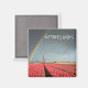 Souvenir photo magnet with a colourful rainbow in a dark sky over a windmill and a field full of bright red tulips during a spring storm in a landscape near Amsterdam in the Netherlands with the text: 'Netherlands'.