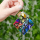 The key chain is made of metal and really sturdy. The flower design is really cheerful. The logo and colors are clear and crisp!