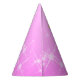 A cute unicorn stands on a colourful rainbow in the clouds, surrounded by pink sparkles. Cute birthday hat for the one year old princess!