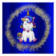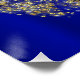 An adorable unicorn poster featuring a little cartoon rainbow unicorn, set against a royal blue background surrounded by a large ring of golden glitter. This poster would look great in a little girl's bedroom, or make a great decoration for a unicorn birthday party.