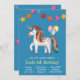 Rainbow Unicorn, Balloons & Banner Birthday Party Invitation