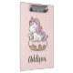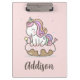 Custom clipboard featuring pastel rainbow unicorn cake personalised with your name in brush script typography.