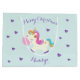 This unicorn Christmas gift bag features a cute rainbow unicorn and heart design with faux gold glitter. Personalise it with a name.