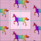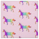 A fabric with a unicorn theme. A unicorn in rainbow colours.