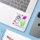 Rainbow Unicorn, Flowers and Name Sticker for little girls.