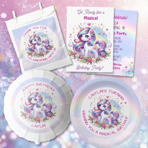 Rainbow Unicorn Girl's Birthday Party Personalized Confetti