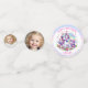 A sweet unicorn themed birthday party personalized photo, name and age confetti for a little girl. Purple, pink and rainbow design sparkles and hearts.