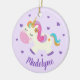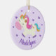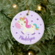Rainbow Unicorn Glitter Christmas Purple Name Ceramic Tree Decoration