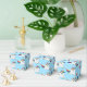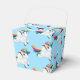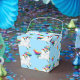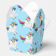 Party favour box shown in a light blue colour with a cute cartoon rainbow unicorn print.