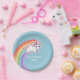 Super cute baby unicorn jumping in the air with a sparkle rainbow. Personalise with your own text.