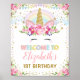 Rainbow Unicorn Pink Gold Floral Birthday Welcome Poster