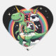 Rainbow Unicorn Riding T rex - Dinosaur Boys Girls Heart Sticker
