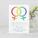 Vibrant and elegant lesbian wedding invitation in rainbow colours with two venus symbols.