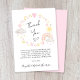 Cute whimsical baby girl shower thank you card featuring "Thank You" in a stylish script and boho-inspired pink and yellow watercolors of a rainbow, sun, hearts, stars, moons and clouds. Personalise your message or leave blank for a handwritten note.
