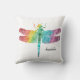 Rainbow Watercolor Dragonfly Personalised Pretty Cushion