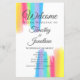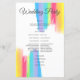 Beautiful rainbow watercolor wedding program with pretty, artistic paint strokes full of bright colour for an LGBTQ event. Elegant script and colourful edges to bring happiness to your union.