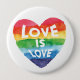 Rainbow Watercolor heart Love is Love Button